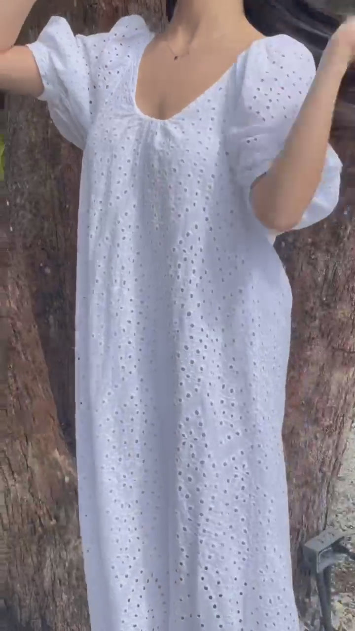 white flowy eyelet dress